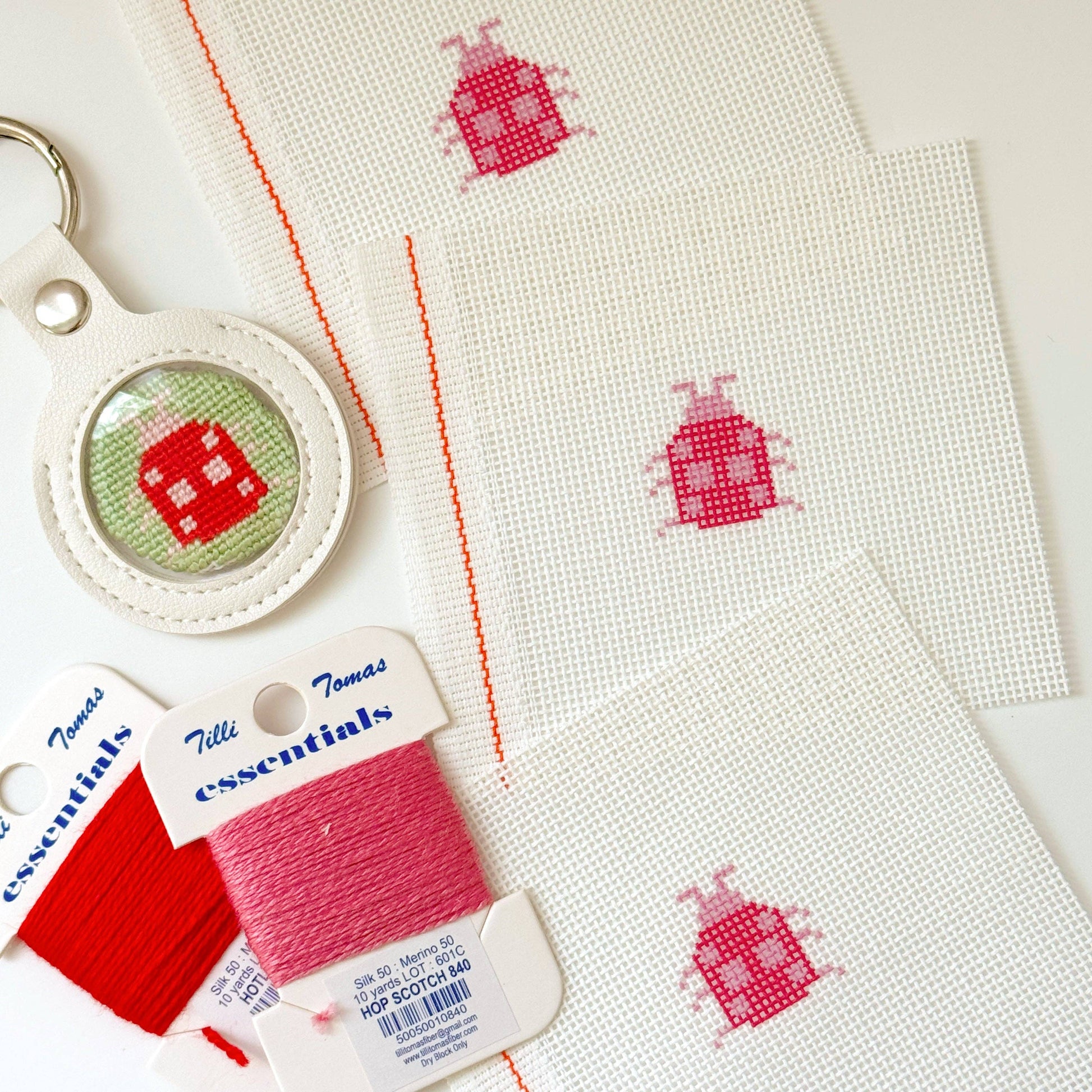 Details: * Mini ladybug needlepoint canvas * 1” round design size * Perfect for key fobs, bag tags, and self-finishing projects * Great for spring stitching * Fun quick project for beginners and experienced stitchers